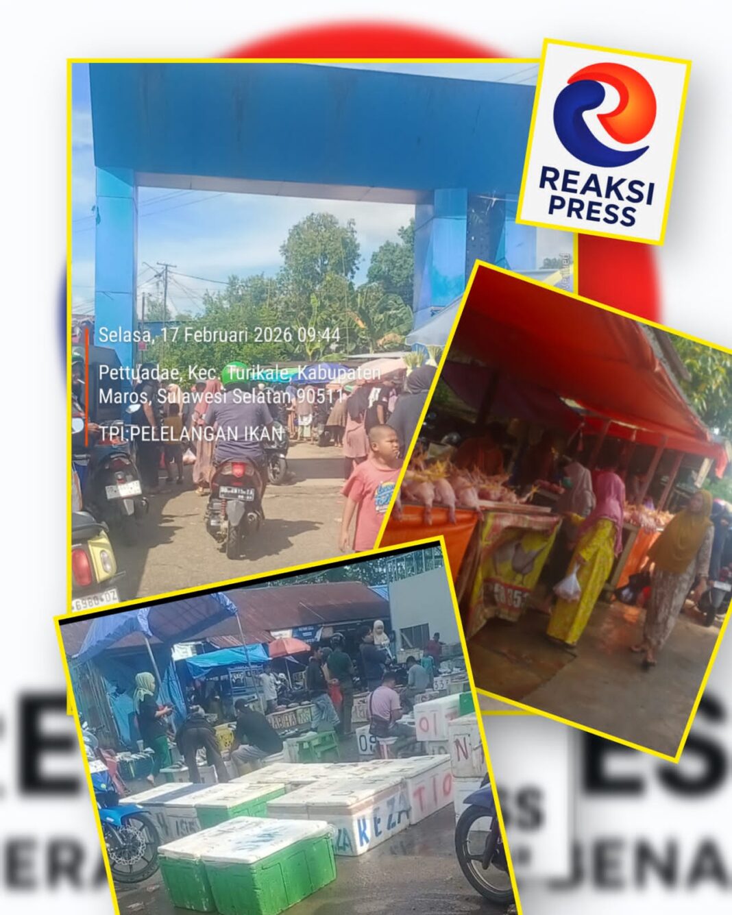 Maros — reaksipress.com – Aktivitas di Tempat Pelelangan Ikan (TPI) Kabupaten Maros tampak berjalan tertib dan kondusif. Sejak pagi, petugas dari dinas terkait terlihat sigap mengatur arus keluar-masuk kendaraan, sehingga aktivitas pedagang dan masyarakat berlangsung aman serta terkendali, sebagaimana terlihat pada suasana di lokasi.